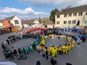 Chaque niveau de classe représentait une couleur d’un anneau olympique, les professeurs également, habillés de