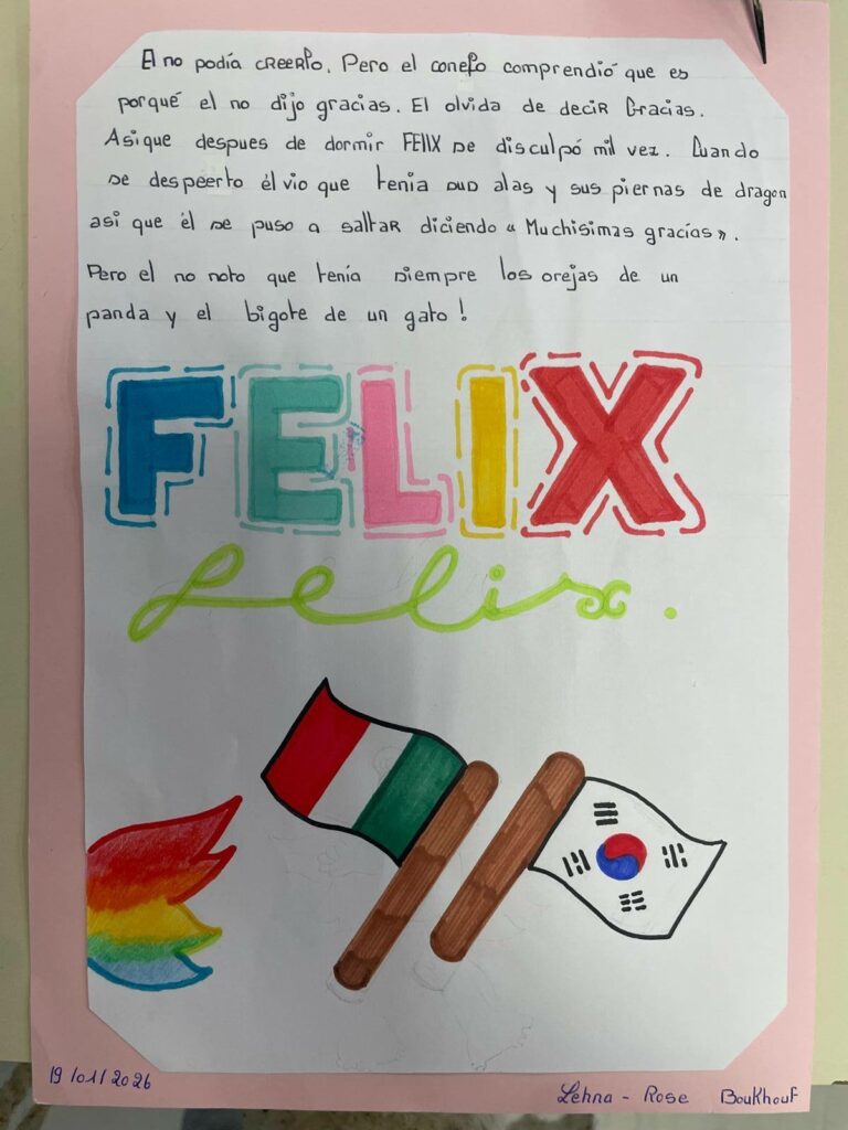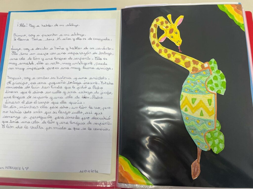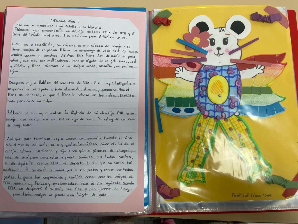 Les 4 eme bilangue de Mme Le Noir ont lu un livre  » la leyenda de los Alebrijes ». ils devaient ensuite créer leur propre Alebrije …19 histoires au total et en ont fait un livre « el libro mágico de los Alebrijes » dont la page de couverture a été faite par M Duteurtre.