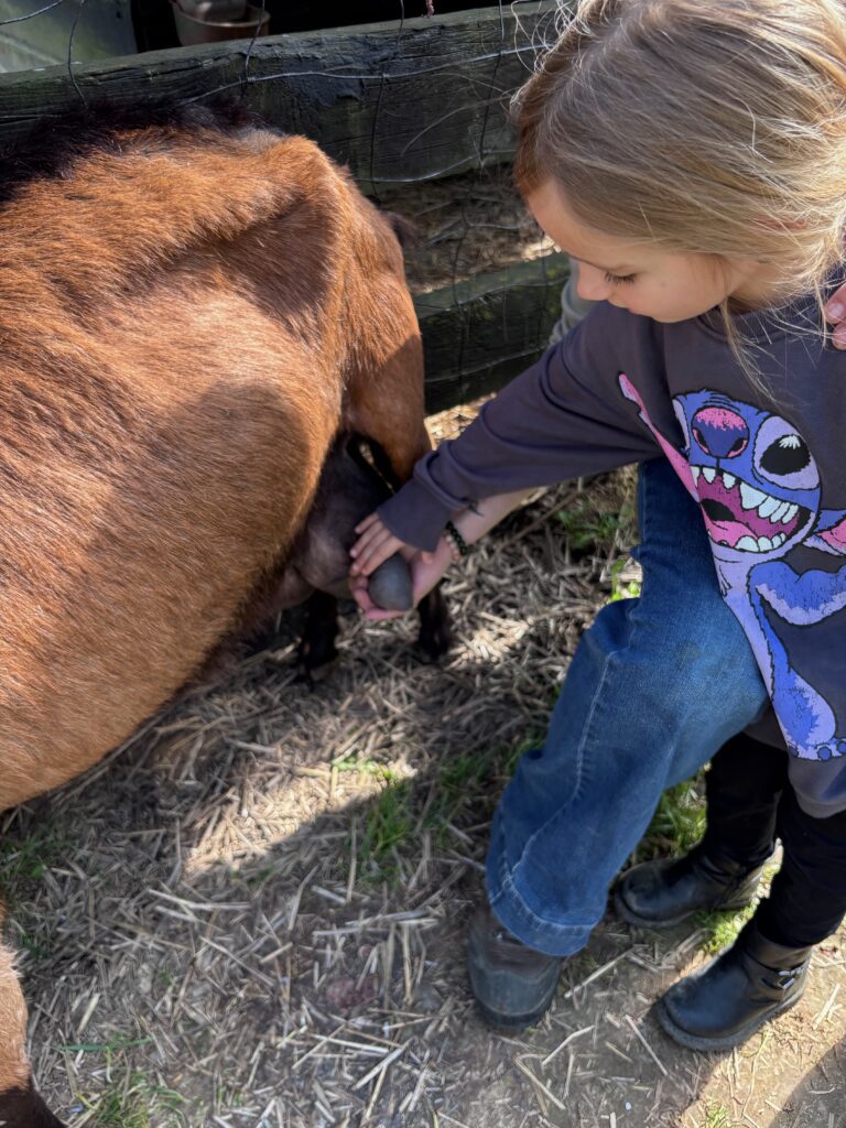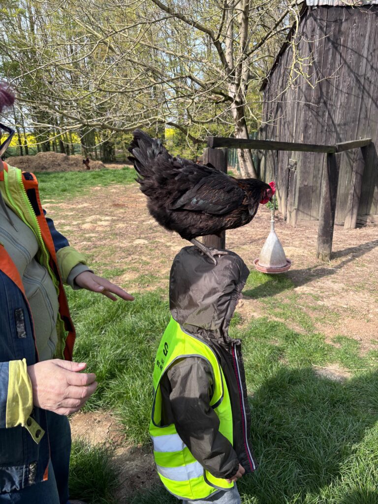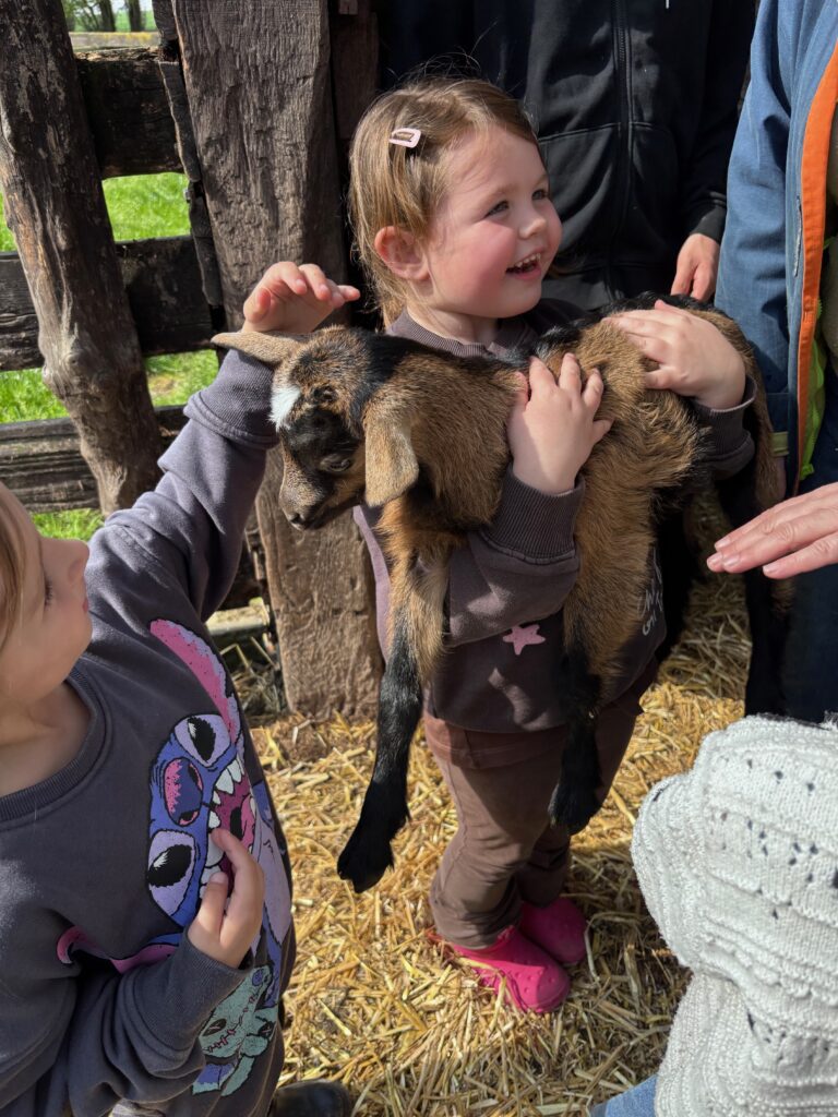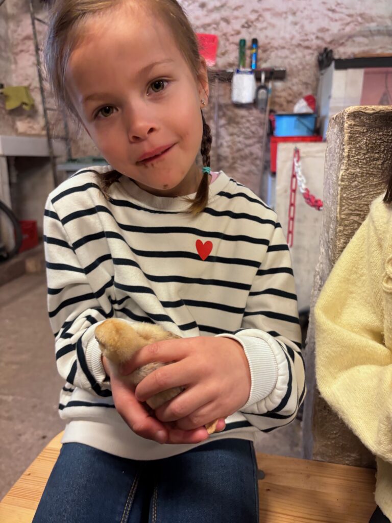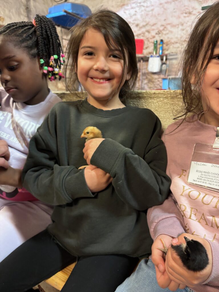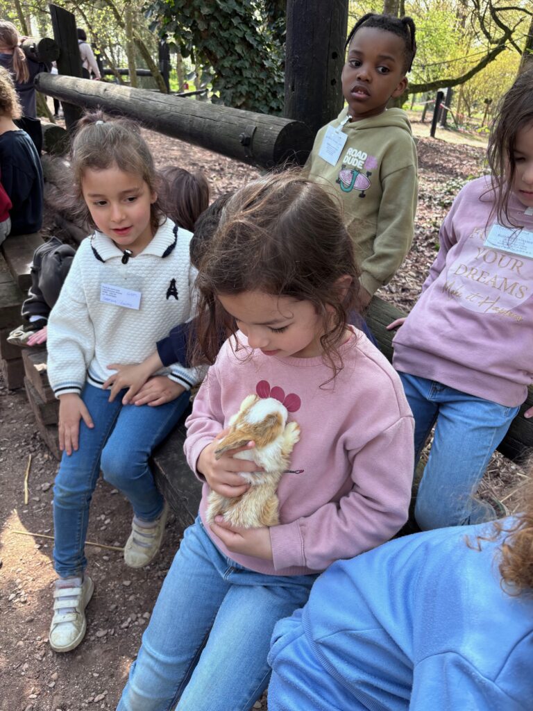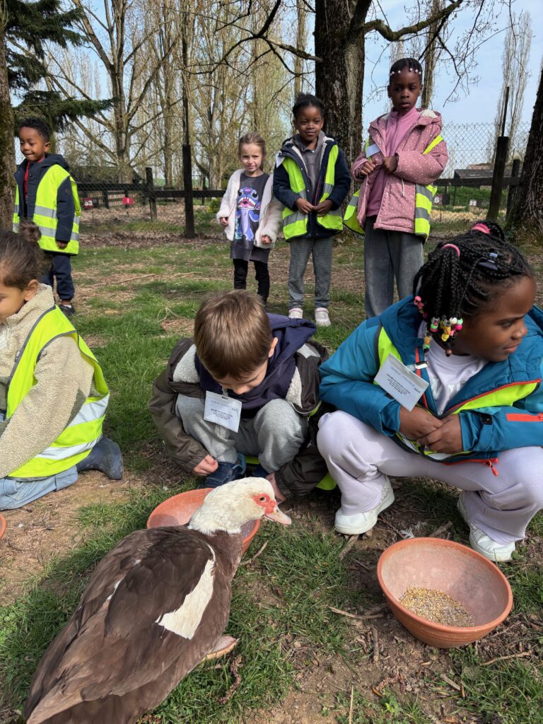 Les enfants ont pu traire une chèvre et, pour les plus curieux, goûter le lait directement sorti de la mamelle! Ils ont dorloté les poussins et les lapereaux, nourri les moutons et les vaches qui n’attendaient que ça! Grâce au beau temps, nous avons mangé dehors! Riches de ces moments exceptionnels, nous avons repris le car un peu déçus que la journée se termine et un peu tristes de quitter tous les animaux de la ferme.