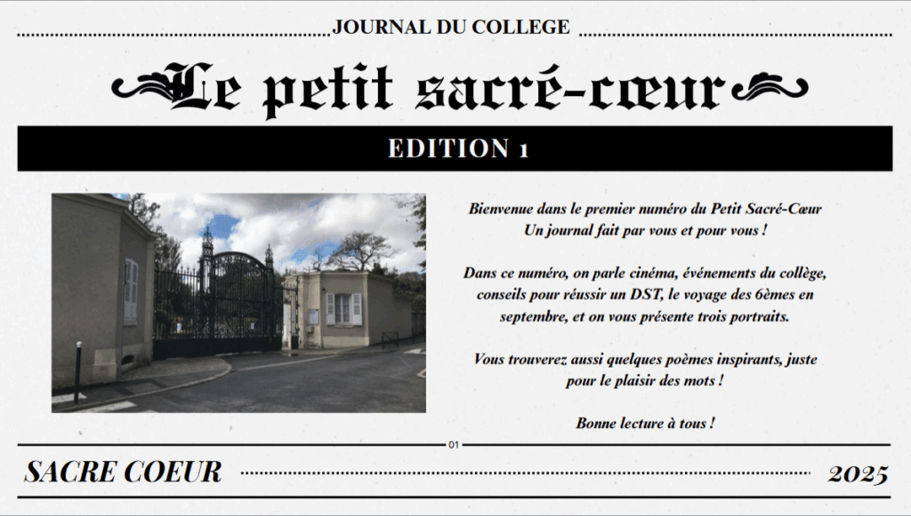 L’année reste rythmée par de multiples projets (sorties culturelles, voyages…..) et événements (Carnaval, marché de Noël, fête de fin d’année…). De fait le Cours Sacré Cœur vous propose un environnement propice et incontournable au développement personnel et intellectuel de votre enfant.