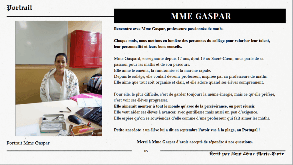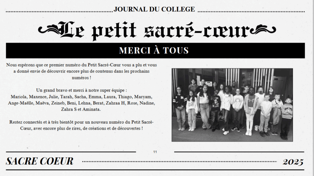 Un groupe d’élèves encadré par Aminata, de la vie scolaire, ont conçu le 1er numéro du Petit Sacré Coeur